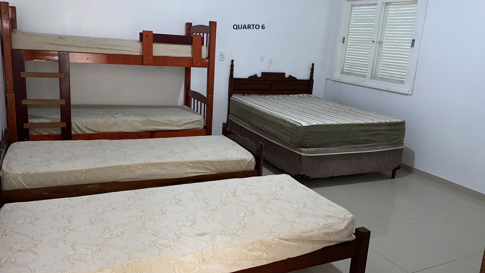 Quarto 6: parte superior lateral fundos 1 cama casal 1 beliche e 3 camas solteiro: 7 pessoas