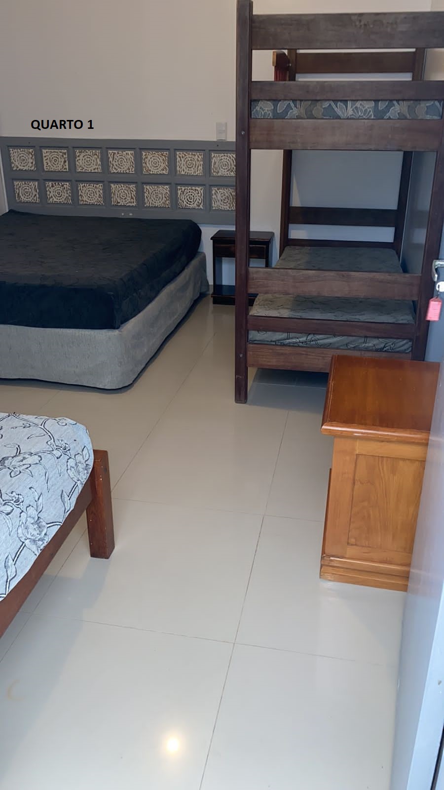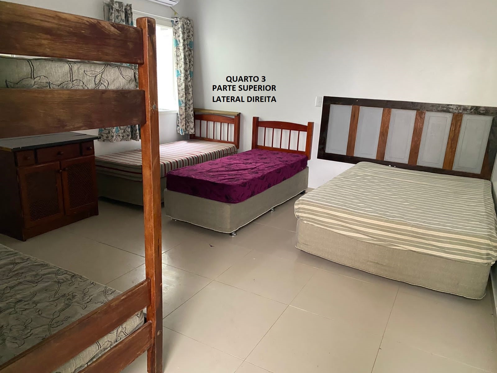 Quarto 1: parte superior lateral direita 1 cama casal 1 beliche e 1 solteiro: 5 pessoas