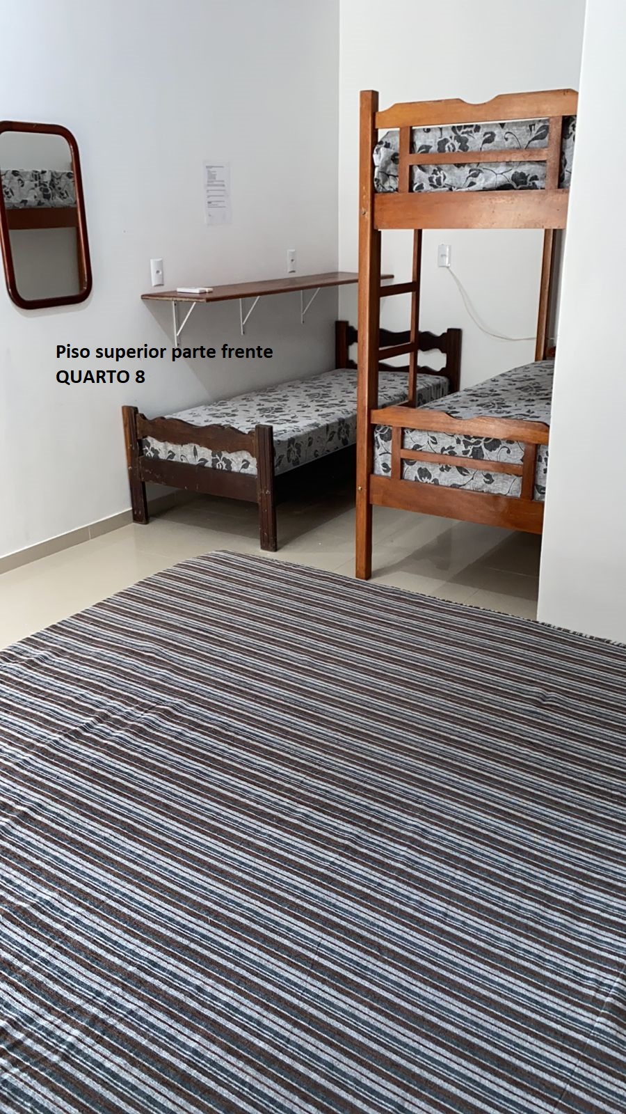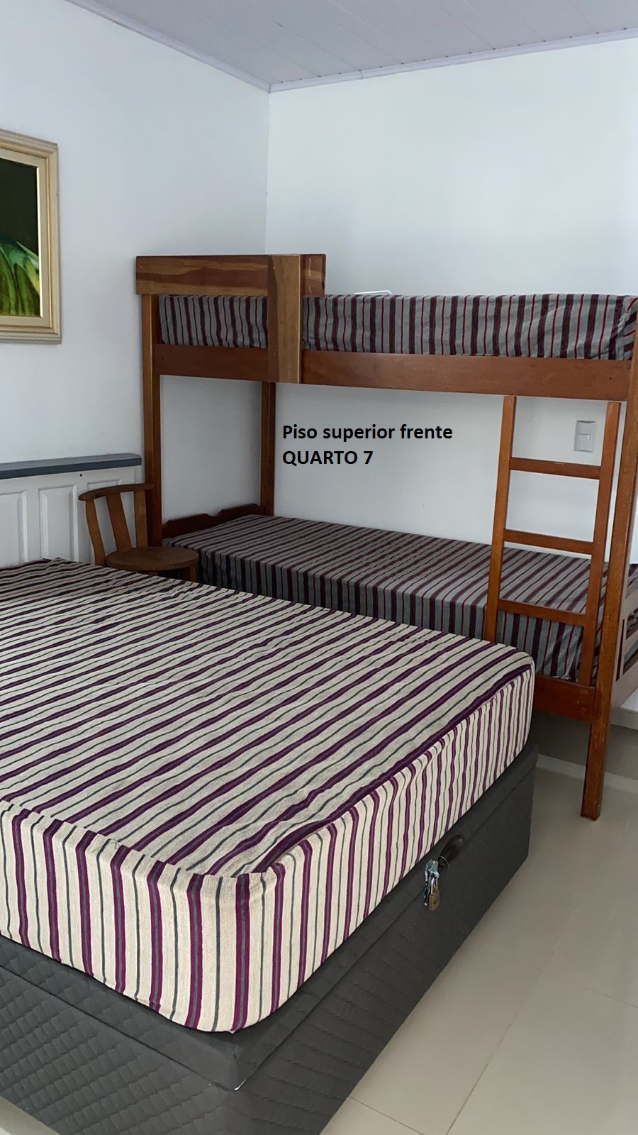 Quarto 7: superior frente 1 cama casal, 1 solteiro e 1 beliche: 5 pessoas