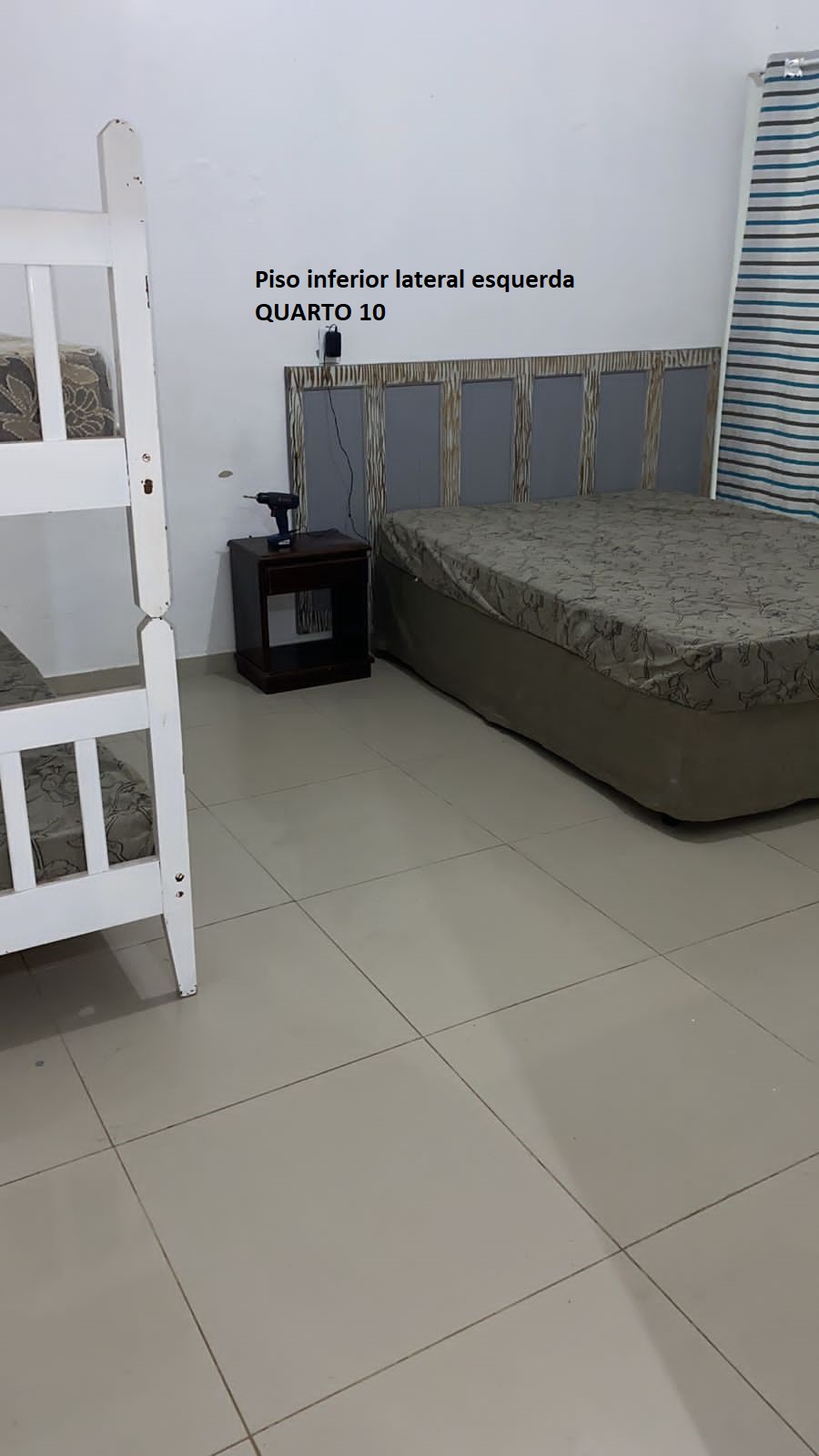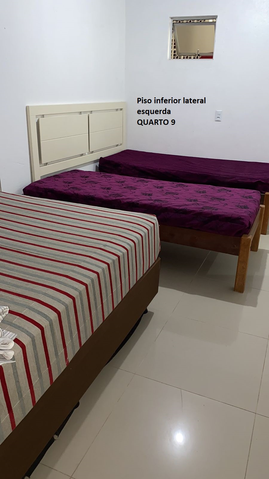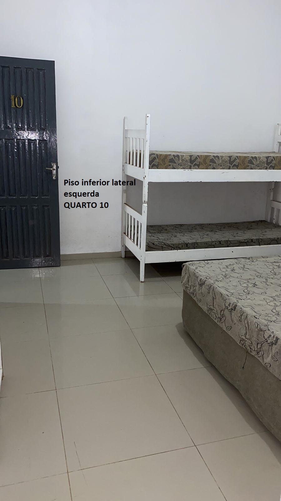 Quarto 10: parte inferior lateral esquerda 1 cama casal e 2 solteiro : 4 pessoas