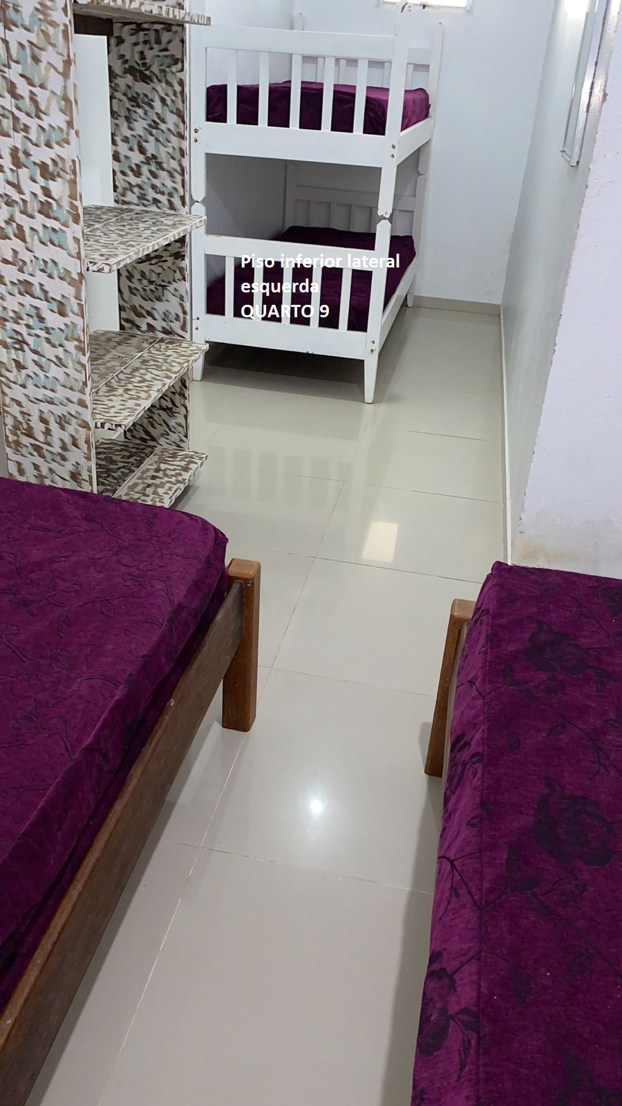 Quarto 9: parte inferior lateral esquerda 1 cama casal, 1 cama solteiro e 1 beliche: 5 pessoas